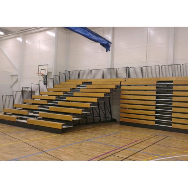 Wooden Retractable Indoor Bleachers Polymer Bench With Guardrail System Images |